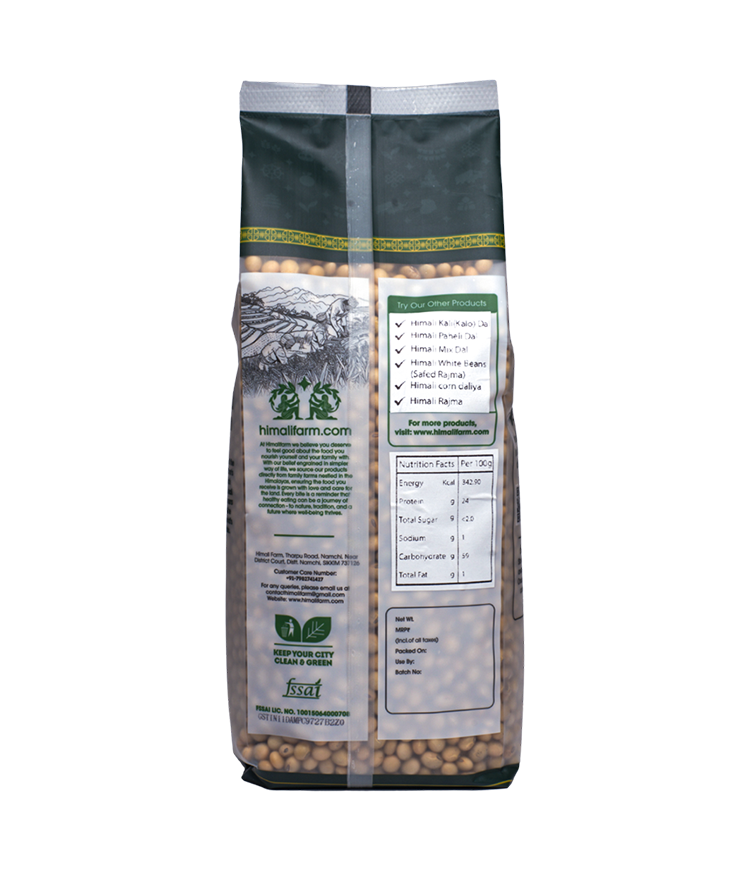 ✦ Nutritional Benefits: Rich in plant-based protein, omega-3 fatty acids, calcium, and iron ✦ Cultivation: Grown in Sikkim's clean and natural environment ✦ Packaging: Carefully packed without artificial preservatives, ensuring purity and qualitys ✦ Usage: Perfect for curries, roasted snacks, soy milk, tofu, and many modern healthy recipes ✦ Origin: Sikkim, Himalayan region, known for its fertile valleys and pristine environment