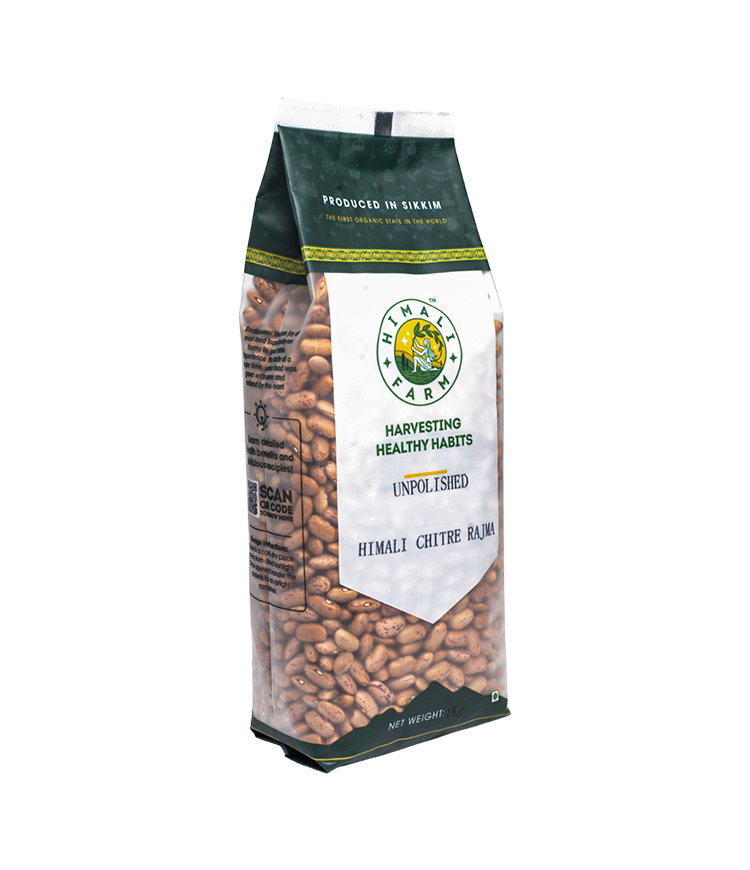 Grown in the clean, mineral-rich soils of the Himalayan hills, Chitre Rajma from Sikkim is a traditional mountain bean known for its distinct speckled appearance, rich flavor, and creamy texture. Cultivated naturally in Sikkim’s cool climate, this rajma matures slowly, developing better taste, higher nutrition, and superior quality compared to mass-produced beans.