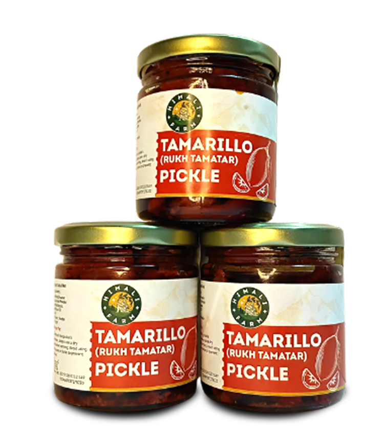 Grown in Sikkim: Tamarillo is grown in the cool, pristine hills of Sikkim, where natural conditions give the fruit its unique tangy flavor. Pickle Making: Handpicked tamarillo is traditionally pickled with aromatic spices and natural ingredients, allowing the flavors to mature naturally. Taste: Tangy, mildly spicy, and full of bold flavor, this pickle adds a refreshing twist to everyday meals.